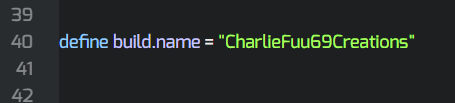 En este caso utilizaremos la función build.archive(). Primero, para generar el archivo “.rpa”, en la función debemos dar un nombre, seguido del término clave que usaremos para dictaminar en qué compilación incluir este paquete :