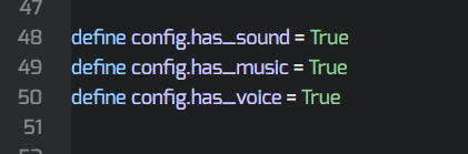 Está variable es responsable de mostrar los mezcladores de sonido en el menú “Ajustes” del juego. Recordemos que tenemos 3 canales de sonido en Ren’Py :