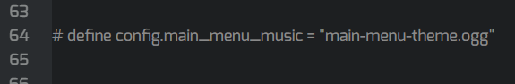 Está variable recoge con una String, la ruta de un archivo de audio que se reproducirá cada vez que el jugador esté en el menú principal. Este audio no se reproduce si accedes al menú principal mientras estás jugando en la novela. Descomenta el código para escribir la String con la ruta de la pista musical.