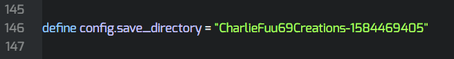 Esta variable recoge mediante una String, el nombre que tendrá la carpeta para almacenar las partidas guardadas del jugador. Todas las partidas son guardadas en :