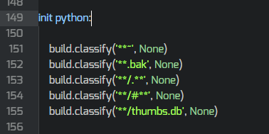 Probablemente ya te confundiste, pero esto es realmente simple. En esa parte del código se señalan los archivos que se excluirán del proceso de compilación del juego (No estarán dentro del archivo de compilación), donde tú podrás agregar más archivos que decidas excluir de la compilación.