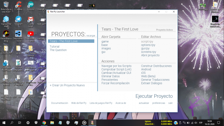 Siguiente post? Será el tutorial para crear un proyecto en Ren’Py!. Incluiré los pasos para crear el proyecto y una escritura básica en el código para empezar a programar de una vez por todas!.
