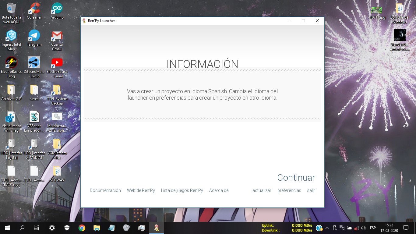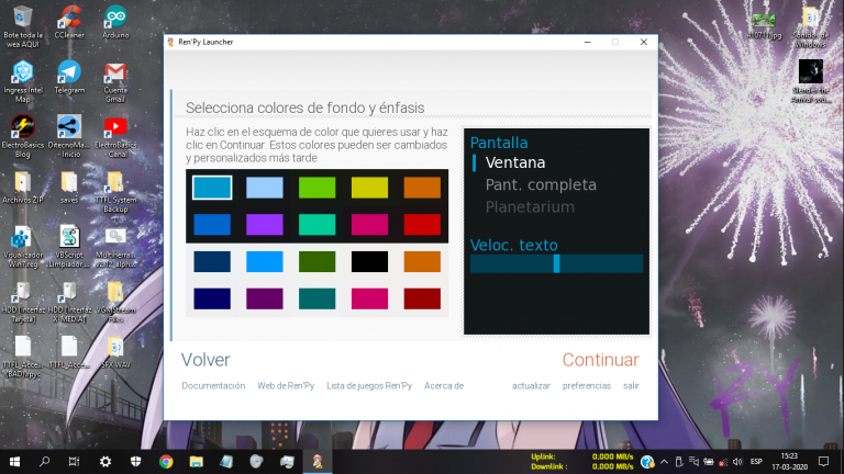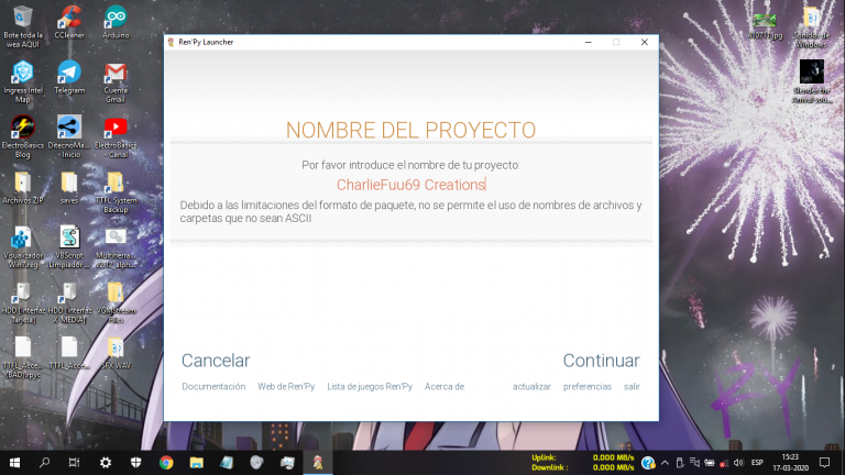 Luego de este paso, presionas “Continuar” y Ren’Py hará su trabajo. El motor puede demorarse 1 minuto o 2, dependiendo de las capacidades de tu hardware (Computadora).