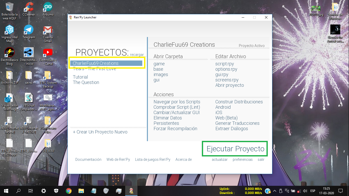 Bien muchachos, hasta aquí llegó el tercer post de este hilo donde les enseñaré a programar juegos en Ren’Py!. Espero que hayas entendido el como empezar a escribir la historia y como definir personajes en los scripts!.