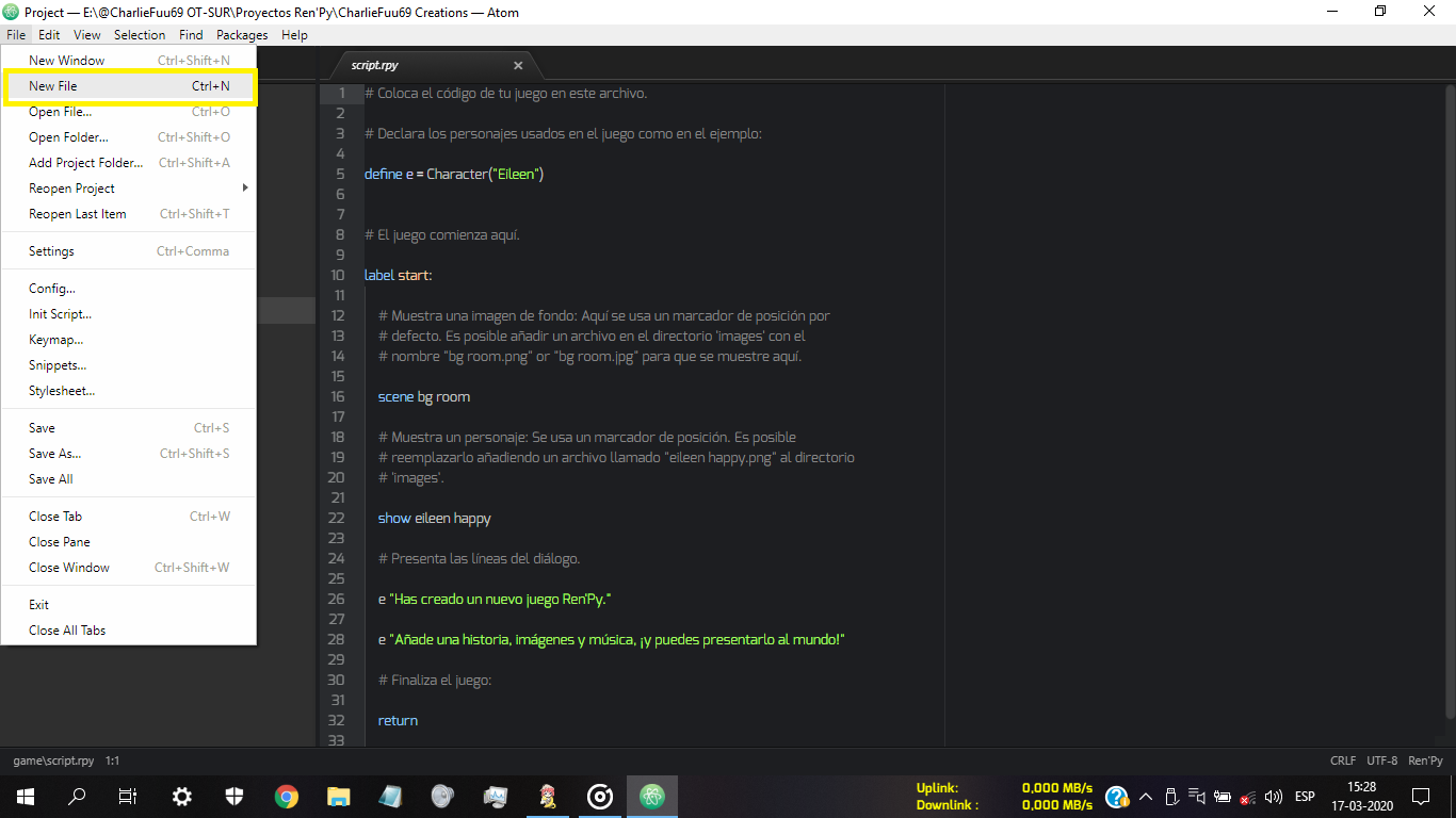 1. COMO DEBO CREAR UN NUEVO PROYECTO EN REN’PY?
