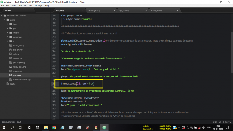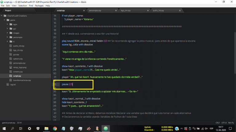 El desarrollador de Ren’Py ha dejado a disposición, dos tipos de pausas para que podamos utilizar. Estos tipos de pausas son los siguientes :