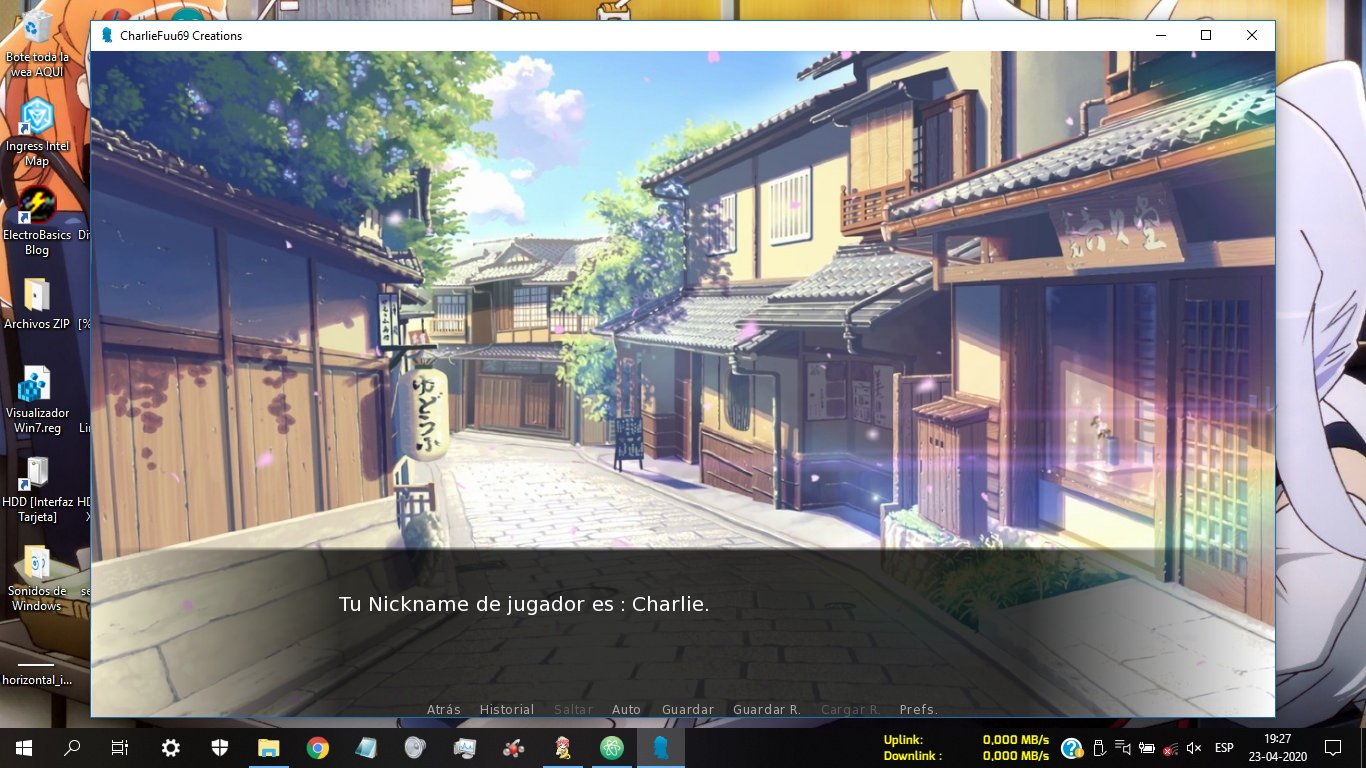 De la cual, si arrancamos el juego, interpolará el nombre del jugador que escribimos (En mi caso, me llamé Charlie) :